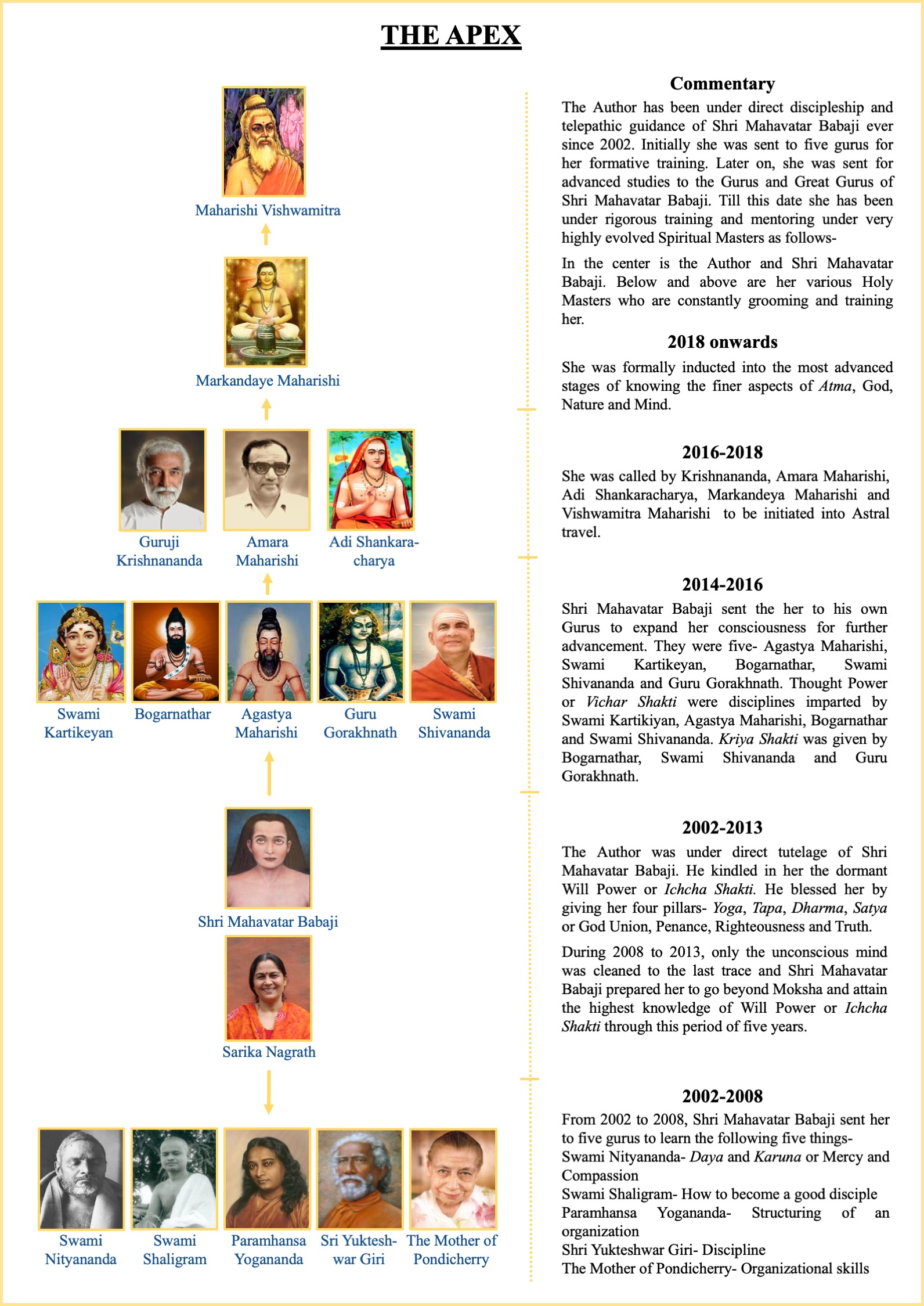 Maharishi Amara, Krishnananda, Markandey, Kashyap, Bhardwaja, Adi Shankaracharya are all immortal and guiding my penance on daily basis.